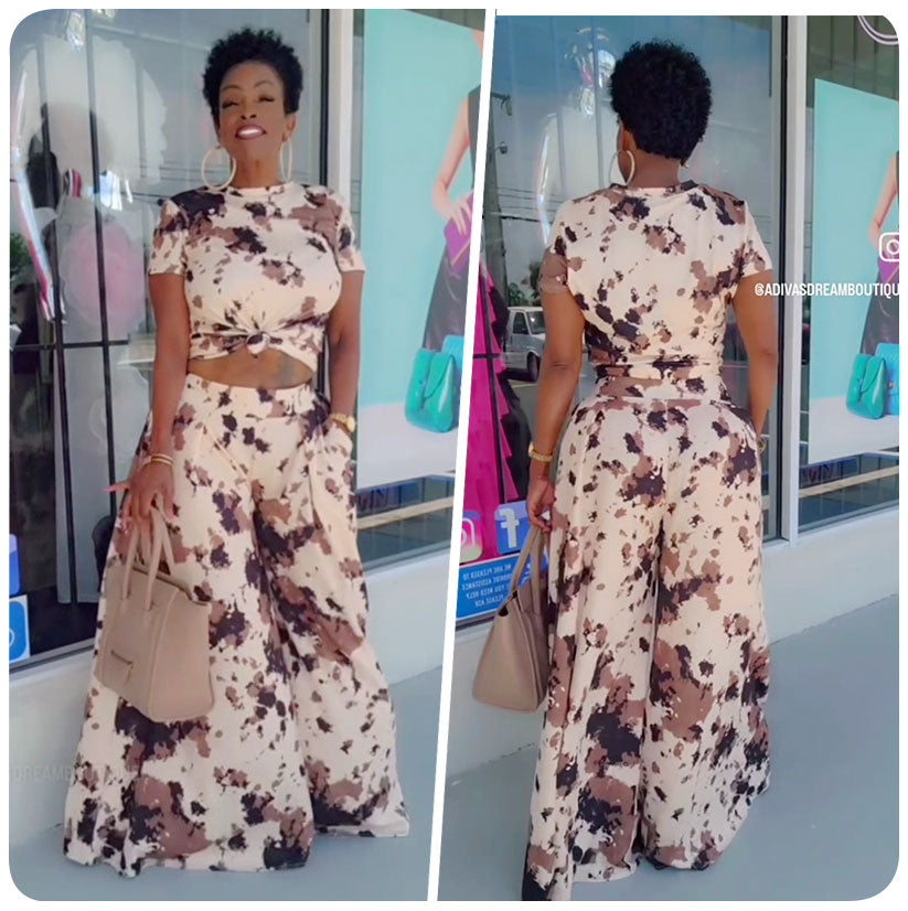 Cow Print Wide Leg Pant Set